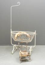 Witgelakt stalen wiegje, circa 1900 -boutjes kap manco, roest-, daarbij: houten kinderstoeltje, eerste helft 19e eeuw -zonder bekleding, defecten-, 200 x 110 x 54 cm
