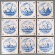 Negen keramiek tegels met Friese landschappen, 19e/20e eeuw, 13 x 13 cm