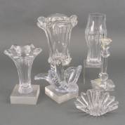 Drie diverse kristallen vazen, twee schalen en kandelaar, 27,5 cm