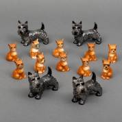 Porseleinen beeldjes: vier Schotse terriërs, en tien boxers, uitvoering Goebel, Duitsland