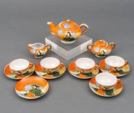 Japans porseleinen kindertheeservies met polychroom decor van figuren in Satsuma-stijl, begin 20e eeuw