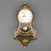 Consoleklok in groengelakte kast met floraal decor, adres: Eluxa, 20e eeuw, 50 x 23 x 10 cm