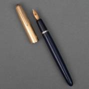 Donkerblauwe Parker vulpen met goudkleurige dop -scheurtje-, 14 cm