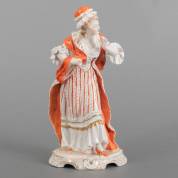 Polychroom porseleinen beeld, dame in ochtendkledij, Dresden, 32 x 15 x 12 cm