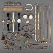 Diverse bijouterieën, waaronder zilver en diverse horloges