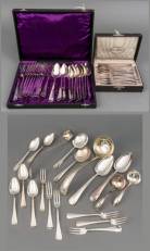 Divers verzilverd bestek, Haags lof, uitvoering Gero, waaronder: zespersoons dessertcouvert en elfpersoons tafelcouvert, beide in opbergcassettes