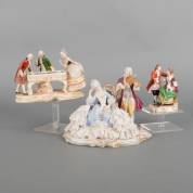 Drie polychroom beschilderde porseleinen beeldgroepen, 20e eeuw -defecten-