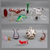 15 stuks hedendaags glaswerk: dieren, vaasjes, schaaltjes en presse-papiers -enkele gebruikssporen-