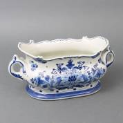 Delfts aardewerk jardinière met blauw-wit floraal decor, De Porceleyne Fles, 20e eeuw, 17 x 20 x 38 cm