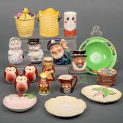 Drie aardewerk 'Toby jugs', waaronder 'Old Salt', Royal Doulton, diverse aardewerk serviesdelen, Carlton Ware, Engeland, etc.