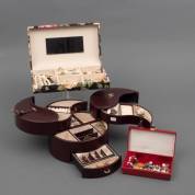 Diverse bijouterieën, waaronder zilver, in vier sieradendozen