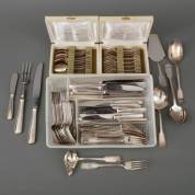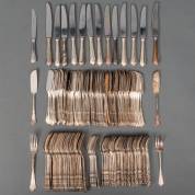 Verzilverd bestekgedeelte, puntfilet, bestaande uit: twaalf tafellepels, elf tafelvorken, twaalf tafelmessen, twaalf dessertlepels, tien dessertvorken, twaalf dessertmessen, negen ijslepels, twaalf taartvorkjes, zes iets grotere taartvorkjes, elf theelepeltjes, vijf mokkalepeltjes, en divers dienbestek