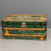 Met groengeschilderd zink beklede hutkoffer, Nederlandse Luchtmacht, circa 1940 -lak verweerd-, 48 x 98 x 52 cm