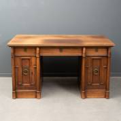 Eiken bureau, het bovenblad met drie lades waaronder twee kastjes geflankeerd door gecanneleerde zuilen, Duitsland, circa 1900 -verkleuringen in bovenblad-, 80 x 150 x 88 cm