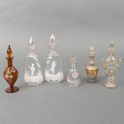 Zes beschilderde glazen flacons -één stop met chip-, 40 cm