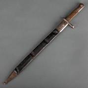 Stalen bajonet met houten heft, in lederen schede, model 1893/16, Spanje, 54 cm
