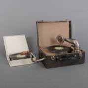 Kindergrammofoon in koffer, inclusief enkele singles -speelt-
