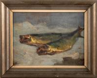 Hollandse School: geprepareerde bokkingen, olieverf op paneel, gesigneerd W.A. Klop, eerste helft 20e eeuw, 17 x 23 cm