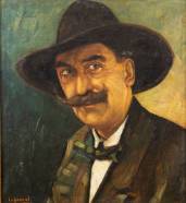 Leo van Gemert (1912-1989), portret van man met hoed, olieverf op doek, gesigneerd en gedateerd 1933 -gedoubleerd-, 59 x 54 cm