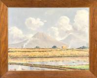 Indonesische School: rijstvelden, marouflé, onduidelijk gesigneerd, 39 x 49,5 cm