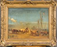 Hollandse School: vee aan de havenkade, olieverf op board, verso toegeschreven en gedateerd in potlood 'J.G. Koelman [fecit] 1884' -kleine schades aan verflaag-, 29 x 39 cm