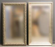 Staande rechthoekige spiegel in zilverkleurige lijst, en liggende rechthoekige spiegel in bewerkte zilverkleurige lijst, 140 x 78 cm