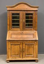 Gebeitst naaldhouten topbureau met beglaasde deuren in de opstand, 213 x 116 x 59 cm