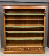 Mahonie open boekenkast met twee laden in het basement -gebruikssporen-, 237 x 206 x 36 cm