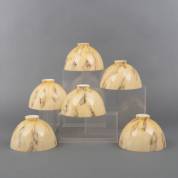 Serie van zes geel gemarmerd glazen hanglampenkappen, 12 x Ø 19 cm