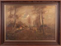 Hollandse School: boerenkar in heidelandschap, olieverf op doek, onduidelijk gesigneerd, eerste helft 20e eeuw, 48 x 68 cm