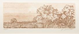 Mi Desmedt (hedendaags), landschap met bomen, ets 24/30, gesigneerd, 13 x 32 cm