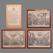 Ingelijst document: 'Notificatie Burgemeesteren en Thesaurieren Ordinaris der Stad Amsterdam ...', door Pieter Hendrik Dronsberg, Amsterdam, 1791, en drie ingekleurde gravures: 'Mars, planetarum tertius, ejusque influentia.', 'Mercurius, planetarum quartus, ejusque influentia.', en 'Saturnus, planetarum septimus, ejusque influentia.' -defecten-