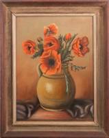 Hollandse School: klaprozen in vaas, olieverf op doek, gesigneerd W. v. Lieshout en gedateerd 1946, 38 28 cm