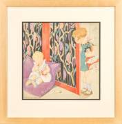 Berhardina Midderigh-Bokhorst (1880-1972), kind en snoepende peuter, kleurenlithografie, gesigneerd, 32,5 x 32,5 cm