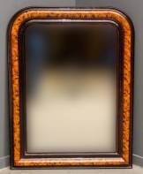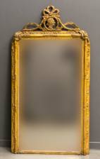 Spiegel met afgeronde bovenzijde en gehout decor, circa 1900, 101 x 78 cm