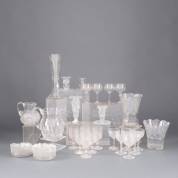 Diverse geslepen glazen vazen, onderzetters, kandelaars en series glazen -één vaas met kleine chipjes-