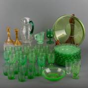 Diverse groene persglazen wijnglazen, borden, etc.