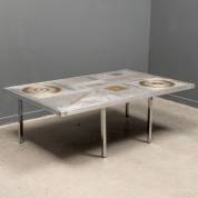 Toegeschreven aan Raf Verjans (1935), salontafel met mozaïek blad van aluminium en koper, staand op vier verchroomde poten, jaren '70, 44 x 131 x 81 cm