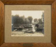 Ingelijste foto: 'Mobilisatie Rhenoy Juli 1915', in eiken lijst, 22 x 28 cm
