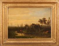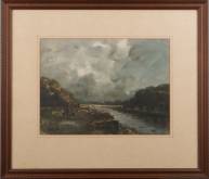 Adriaan Terhell (1863-1949), waterdragende boerin langs een rivier, gouache, gesigneerd onder pseudoniem Ch. Petit, 27 x 37 cm