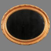 Ovale facetgeslepen spiegel in goudkleurige houten lijst, 20e eeuw, 52 x 62 cm