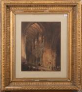 Hollandse School: kerkinterieur, aquarel, verso toegeschreven aan Jan Baptist Tetar van Elven (1805-1879), 24,5 x 19,5 cm