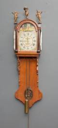 Friese staartklok in eiken kast, 20e eeuw, 148 x 34 x 21 cm