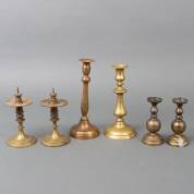 Twee paar en twee diverse messing kandelaars, 25 cm