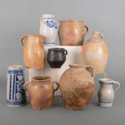Diverse steengoed en aardewerk potten en kruiken, waaronder Keulse potten