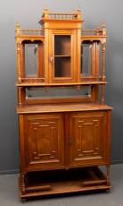 Mahonie buffetkast, de opstand voorzien van galerijranden en facetgeslepen spiegels, de tweedeurs onderkast met étagère, 19e eeuw -enkele plekken met fineerschade-, 210 x 105 x 46 cm