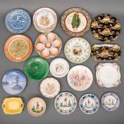 Diverse aardewerk en porseleinen borden, waaronder uitvoering Sarreguemines, Quimper, Ainsley, etc.