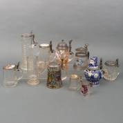 Diverse bierpullen, de meeste van glas en met deksel -enkele kleine defecten-, 27 cm