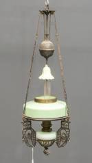 Hangolielamp met mintgroen opaline kap, circa 1900, 104 x Ø 33 cm