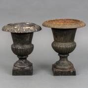 Twee gietijzeren plantenpotten -corrosie-, 26,5 cm